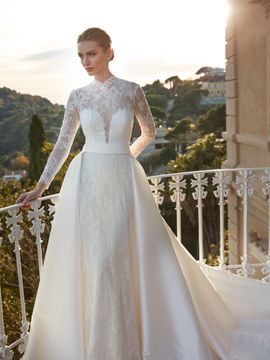 A Saint Patrick, parte do grupo Pronovias, é reconhecida por seus vestidos que unem tradição e feminilidade. Seus modelos trazem silhuetas românticas, cortes clássicos e tecidos com texturas refinadas.